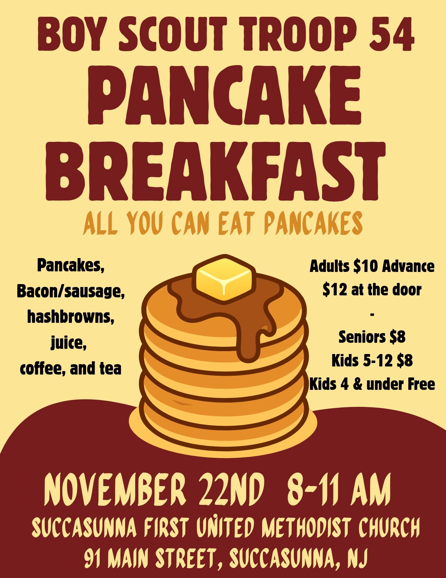 This Saturday November 22nd from 8am to 10am just $10 if you buy tickets in advance. ($12 at the door, Kids and Seniors $8, under 4 free)